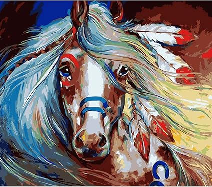 Amazon Com Paint By Number Kits Native American And Horse 16x20 Inch Linen Canvas Paintworks Digital Oil Painting Canvas Kits For Adults Children Kids Decorations Gifts No Frame Toys Games